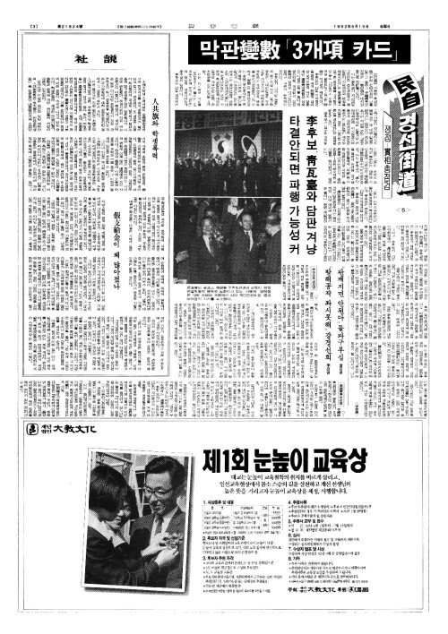 - 金大中(김대중)대표"지난번 野(야)후보 單一化(단일화)실패 후회"