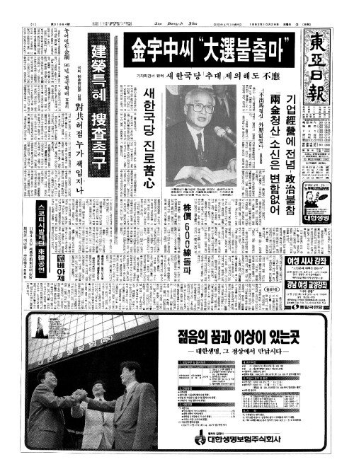 - "市場(시장)방문 중단 제1黨(당)서 公明(공명)모범 보이자" 金泳三(김영삼)총재