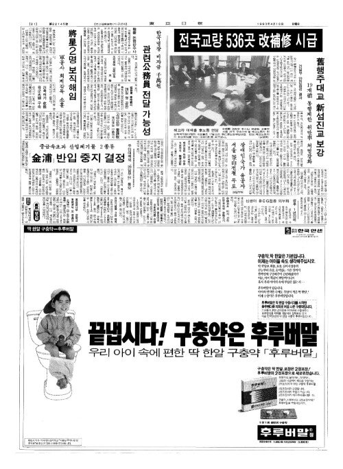- 전국교량 536곳 改補修(개보수) 시급