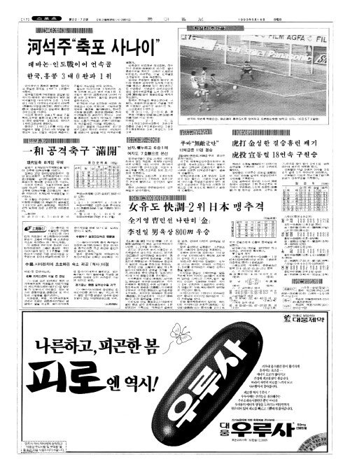 - 월드컵축구 예선 河(하)석주"축포 사나이"