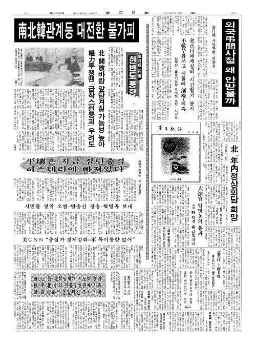 - 金日成(김일성) 死後(사후) 한반도 풍향(1) 南北韓(남북한)관계등 대전환 불가피