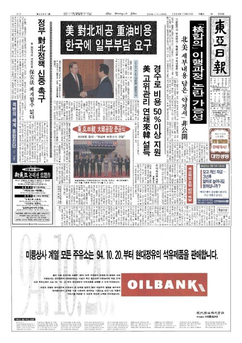 美(미) 對北(대북)제공 重油(중유)비용 한국에 일부부담 요구