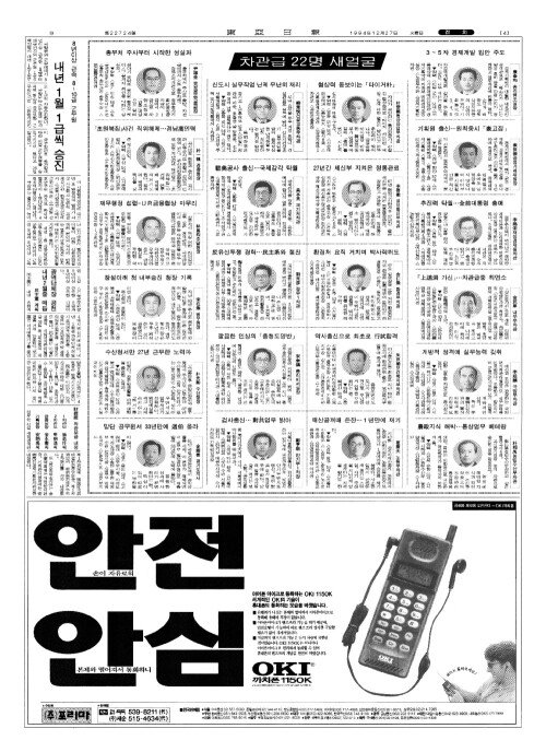 - 財經院(재경원) 차관보급 내정 1차관보 張丞玗(장승우)씨 2차관보 申明(신명)?씨 금융실장 金永燮(김영섭)씨 기획실장 安炳禹(안병우)씨