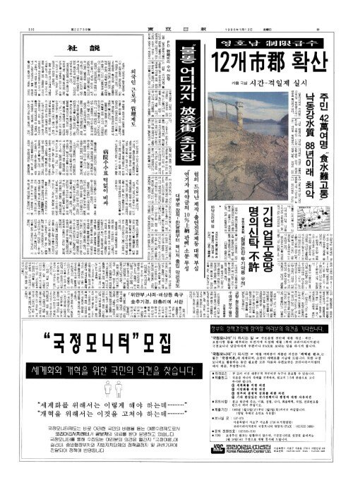 - 日(일)"「경수로」상당액 부담" 클린턴—村山(촌산) 회담