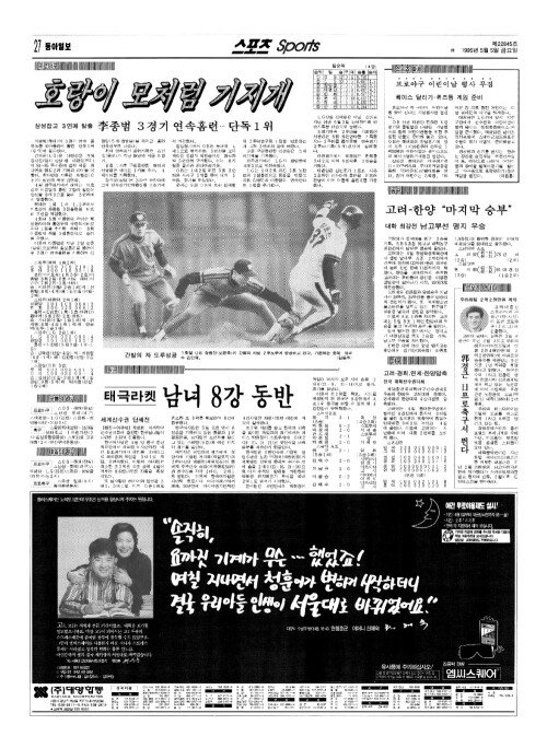 - 「95프로야구 태평양 대 LG인천전」〈KBS2 오후 2·00〉