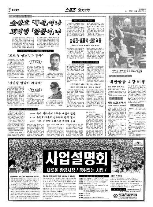 프로야구 金(김)상호「독식」이냐 馬(마)해영「한풀이」냐