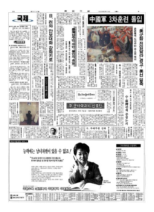 - NYT「中(중)훈련」분석(18일字(자) 社說(사설)) "中(중) 군사력과시 신호탄"