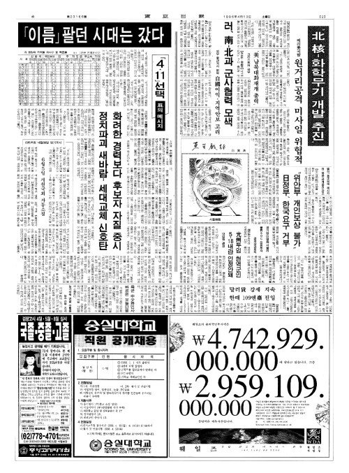 - 올 프로야구 4개구장서 일제히 개막 「96프로야구 개막경기」〈KBS 2 오후1·05 롯데—한화,MBC 오후1·20 OB—삼성,SBS 오후 2·00 현대—LG〉