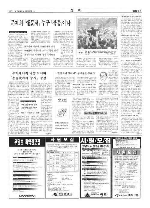 문제의「怪(괴)문서」누구「작품」이냐 일파만파 걷잡을수 없는 파문