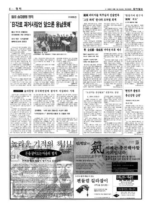 訪日(방일) 金(김)대통령 귀국 기자회견 "日(일)각료 과거사망언 앞으론 용납못해"