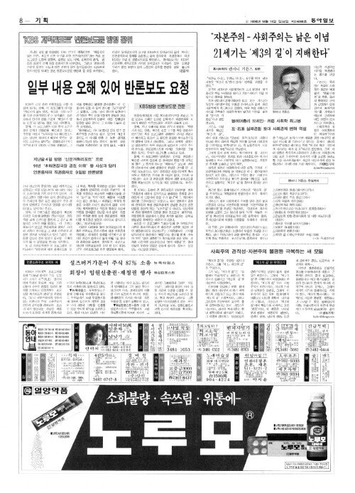 英(영)사회학자 앤서니 기든스 방한 "자본주의-사회주의는 낡은 이념 21세기는'제3의 길'이 지배한다"