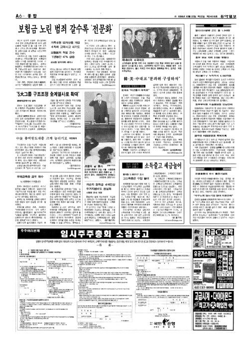- "5大(대)그룹 구조조정 全(전)계열사로 확대" 康奉均(강봉균)경제수석 밝혀