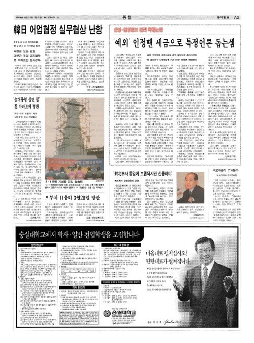 날씨 A2면 투데이 A15면 TV프로 하이라이트〈C3면〉