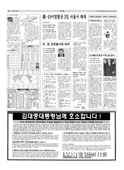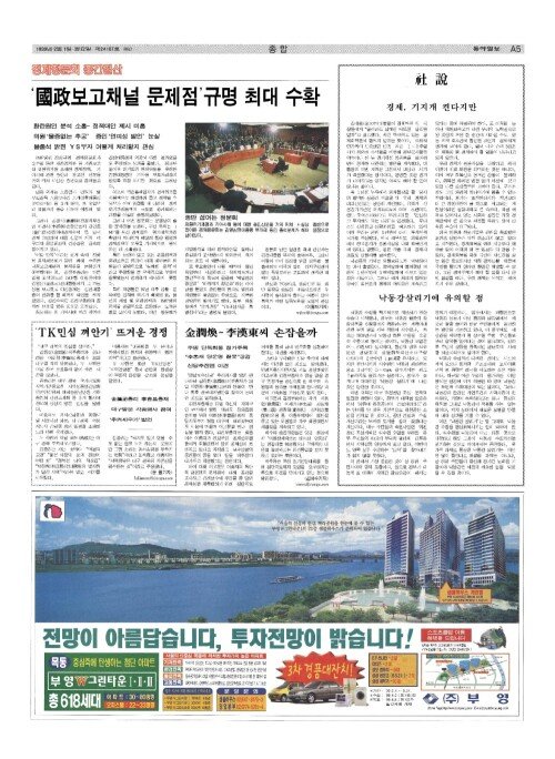 날씨 A2면 투데이 A17면 TV프로 하이라이트〈C4면〉