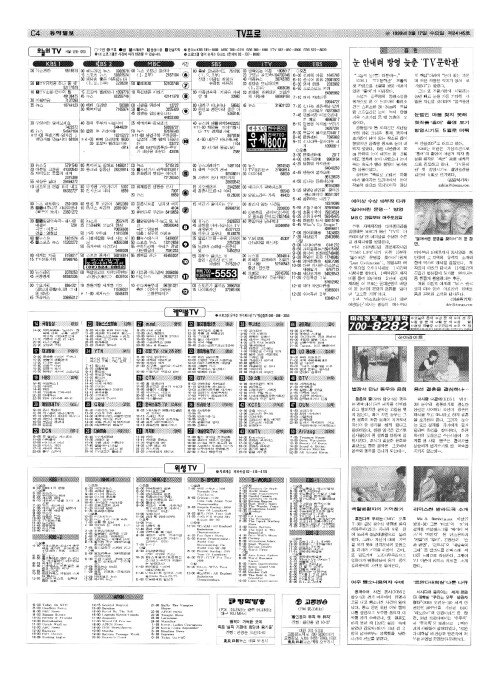 날씨 A2면 투데이 A17면 TV프로 하이라이트〈C4면〉