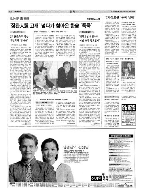 DJ-JP 또 갈등 뒤뚱대는 2人(인)3脚(각) '장관人選(인선) 고개'넘다가 참아온 한숨"푹푹"