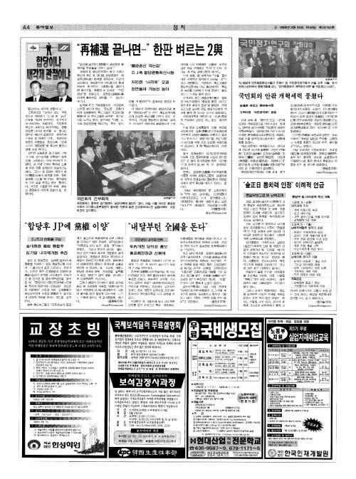 자민련의 내각제 전략 "내달부턴 全國(전국)을 돈다"