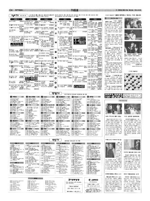 날씨 A2면 투데이 A17면 TV프로 하이라이트〈C4면〉