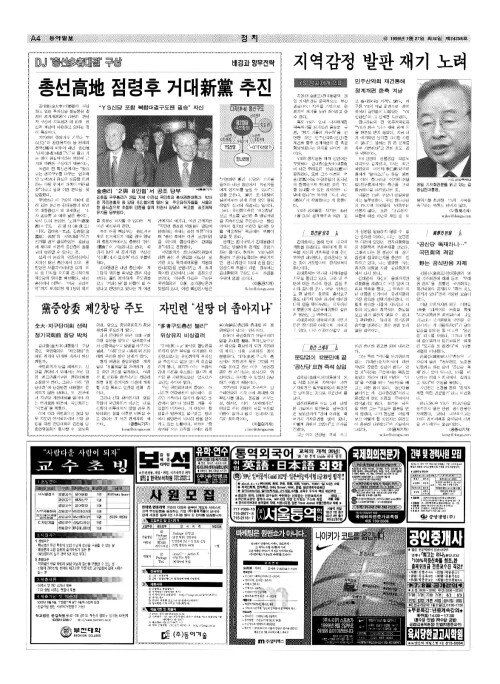 DJ'총선多者(다자)대결'구상 배경과 향후전략 총선高地(고지) 점령후 거대新黨(신당) 추진