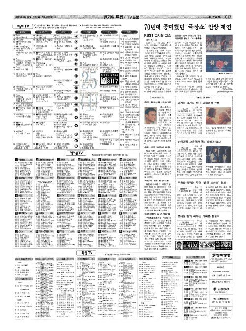 - 원터치 가요파일〈오락·예술영화TV 채널37 오후7·00〉