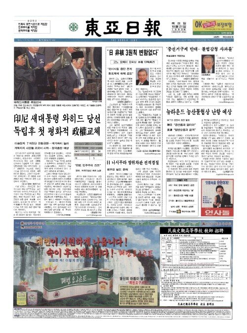 印尼(인니) 첫 평화적 정권교체 대통령선거 이모저모 "와히드"연호속 보안軍(군) 시내 배치 긴장