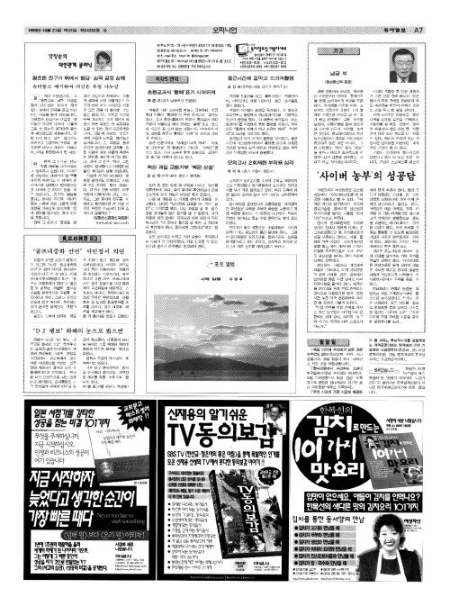 날씨 A2면 투데이 A25면 TV프로 하이라이트 C5면
