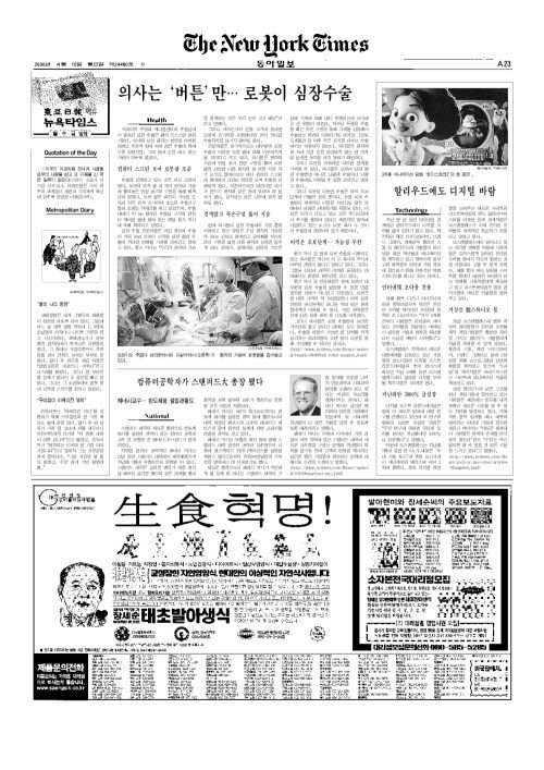 A섹션 23면 뉴욕타임스