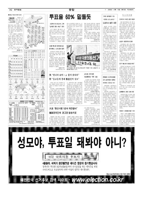 - [16대총선] 선관위 "투표율 60% 밑돌듯"