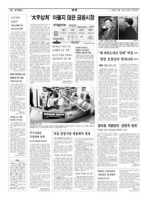 - [증권]주가 두달만에 830 회복…코스닥은 하락세로