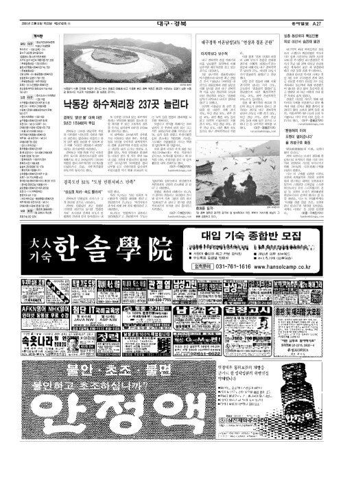 - [대구/경북]낙동강 하수처리장 237곳 늘린다