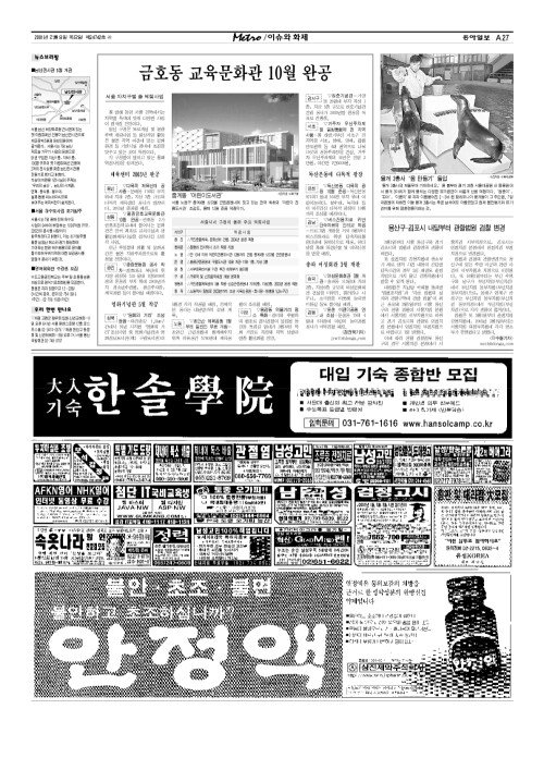 - [수도권]금호동 교육문화관 10월완공 등…서울 각 구청 역점사업