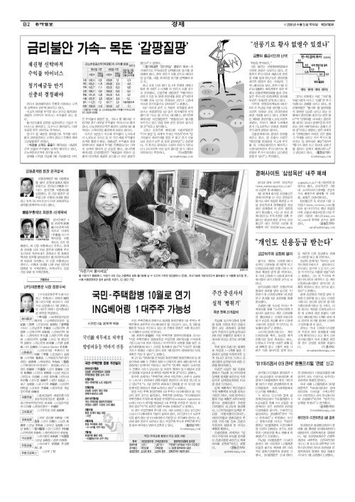 - [국민-주택 합병]국민-주택합병 10월로 연기, ING베어링 1대주주 유력
