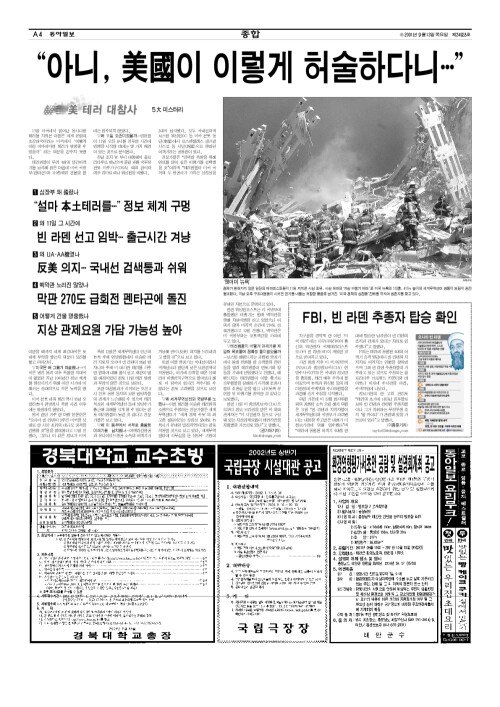 [美 테러 참사]FBI, 빈 라덴 추종자 탑승 확인