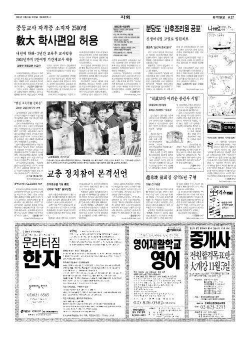 - [여행]철도청, 단풍열차 무박2일 서울~내장산 3일부터 운행