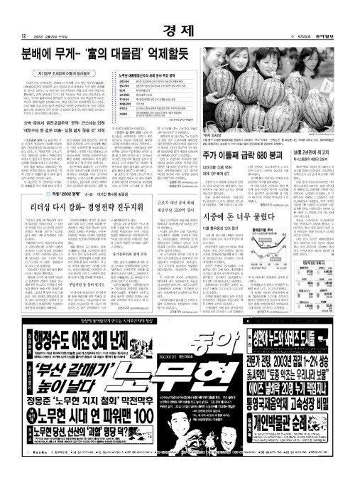 [동아일보 선정 2002년 10大 뉴스]국내