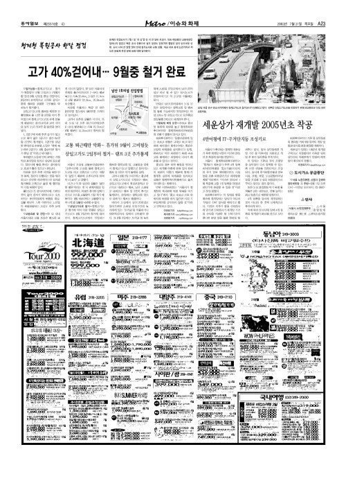 - [수도권]청계천 복원공사 한달…고가 40% 걷어내…9월 철거 완료
