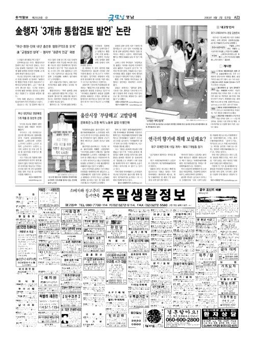 - [대구/경북]金행자 `3개市 통합검토 발언` 논란