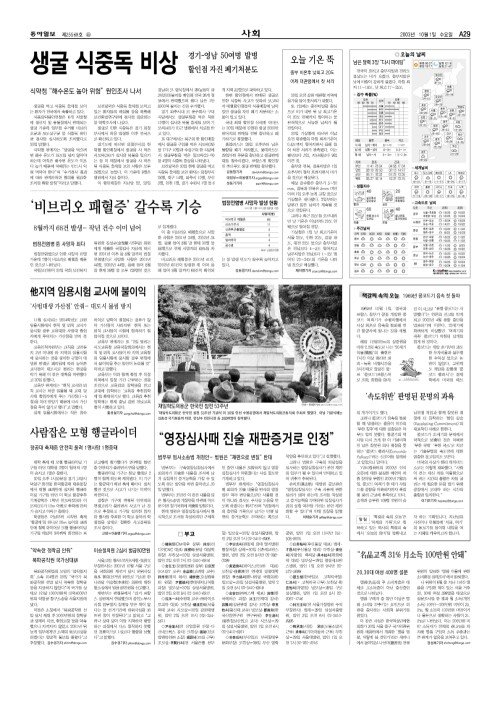 - [사회] 생굴 식중독 비상…경기-영남 50여명 발병, 식약청 원인조사 나서