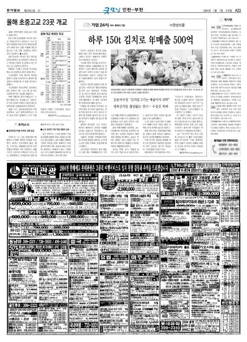 - [인천/경기]기업24시/하루 150t 김치로 年매출 500억 ㈜한성식품