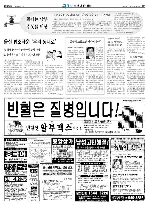 - [부산/경남]목타는 남부, 수돗물 비상…강우량 2003년의 6%