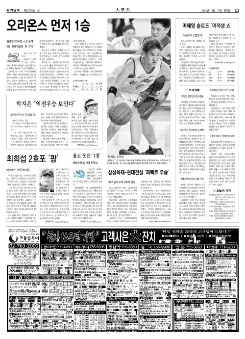 - [프로야구]마해영 솔로포 ‘이적생 쇼’…프로야구 시범경기