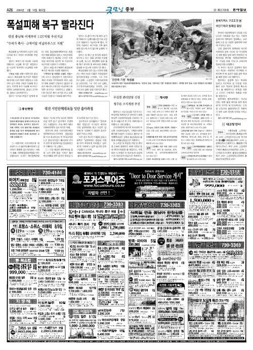 - [대전/충남]폭설피해 복구 빨라진다…대전 충남북 우선지급