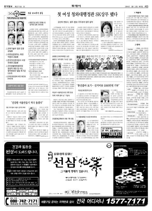 - [경제]첫 여성 청와대행정관 강선희 변호사 SK상무 됐다