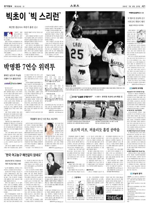 A섹션 21면 스포츠