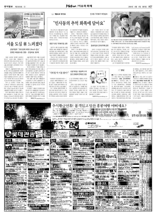 - [수도권]서울 도심 車 느려졌다… 청계천 복원공사등 영향