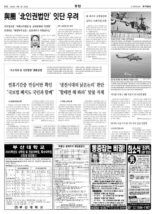 - [뉴스 파일]1일 중부 비… 2일부터 ‘쌀쌀’