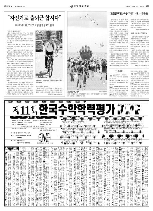 - [대구/경북]`자전거로 출퇴근 합시다`…대구21추진協, 인터넷모임 결성