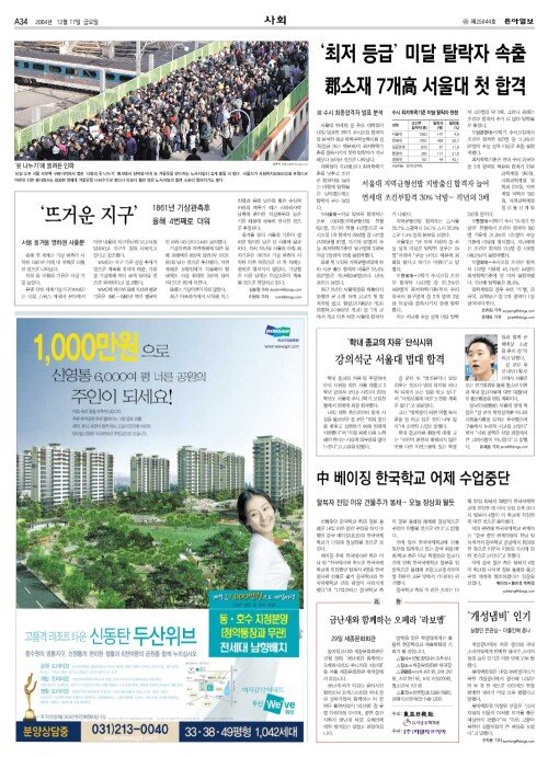 - [동아꿈나무]원광순씨 탈북학생 장학금 100만원