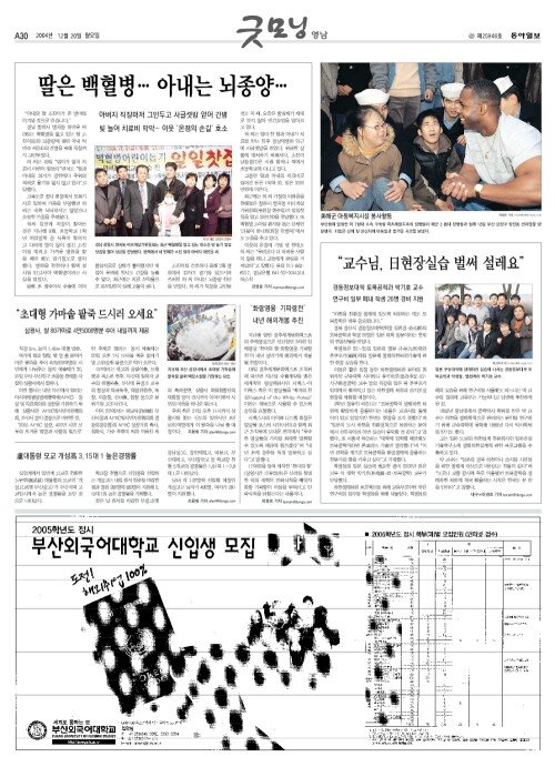 - [부산/경남]딸은 백혈병… 아내는 뇌종양…