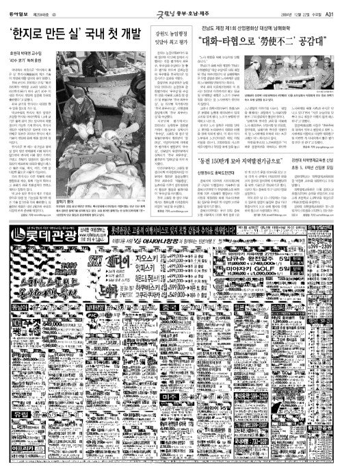 - [전북]‘한지로 만든 실’ 국내 첫 개발